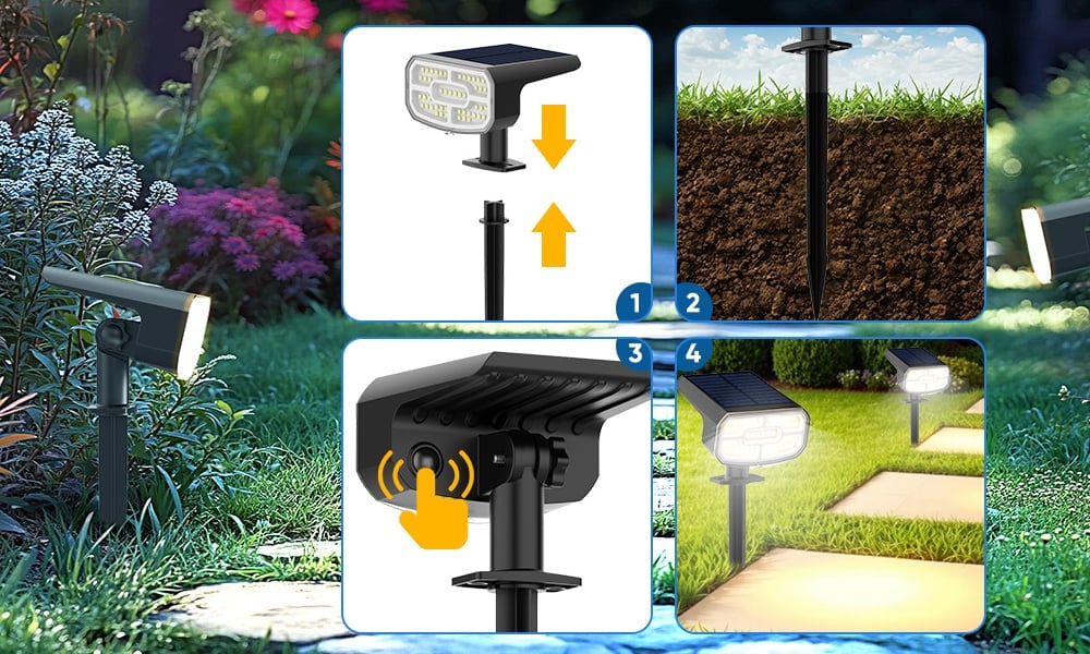 Outdoor Solar Landscape Spotlights are the first truly senior-friendly, intelligent landscape lights that deliver contractor-level results in a 2-minute DIY install.