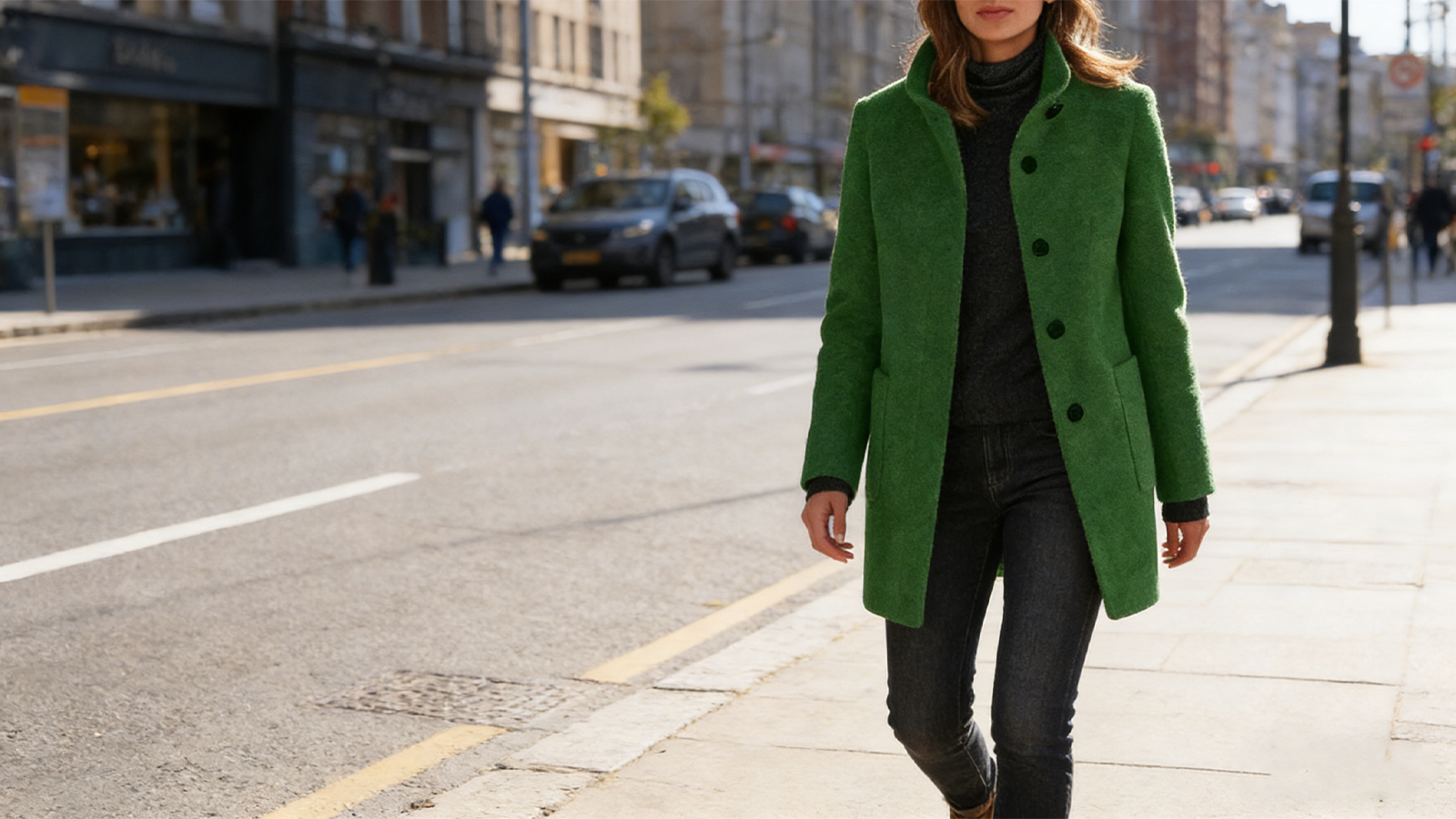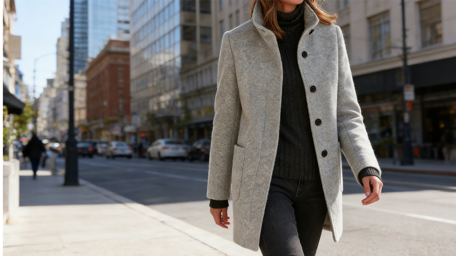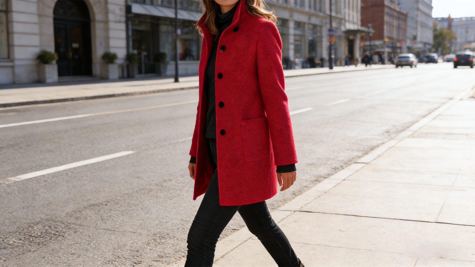Women's elegant stand-collar wool winter coat