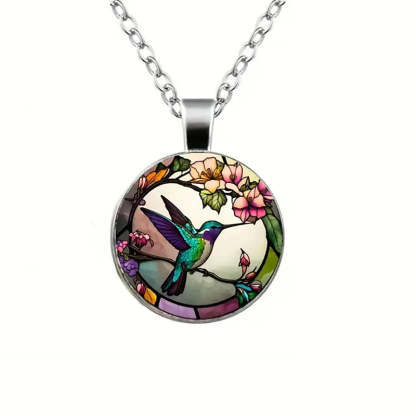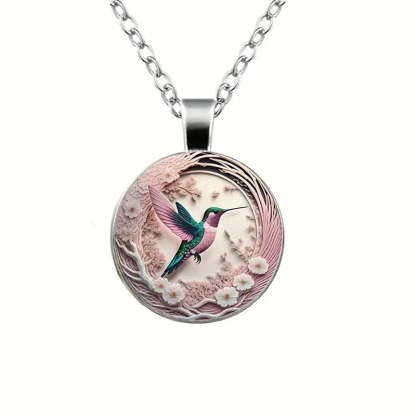 Hummingbird Glass Dome Pendant Necklace
