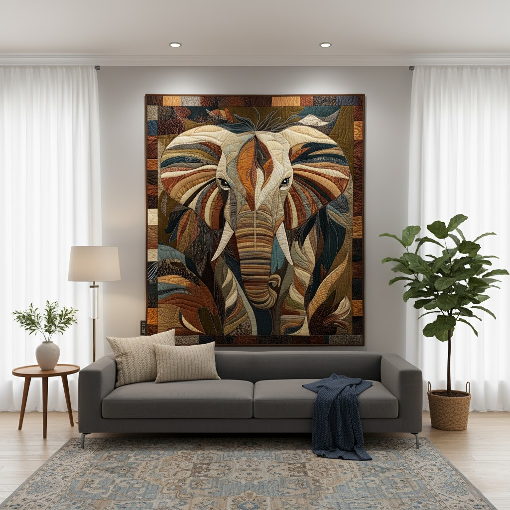 This quilt feels like a work of art, with warm earthy tones and rich layered stitching that add beautiful depth and an i