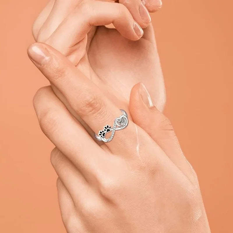 Zirconia Paw Ring with Heart and Infinity Design