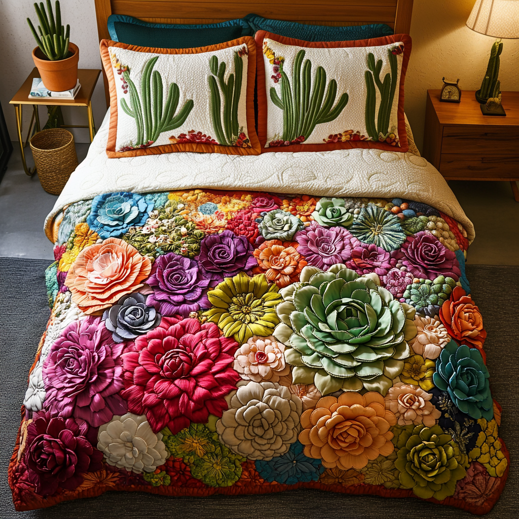 Succulent Symphony 3-Piece Quilted Bedding Set NCU0DV2518